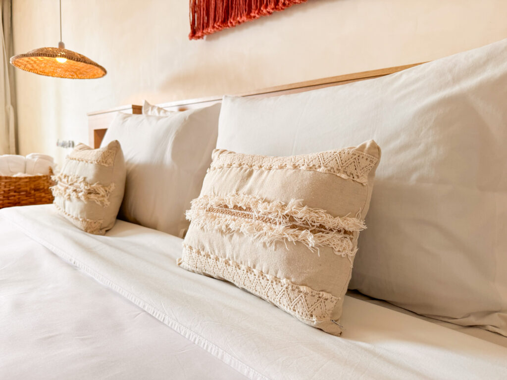 Decoradas ao estilo mediterrâneo, cama de casal, mesa de apoio, poltrona e amenities cuidadosamente selecionados.